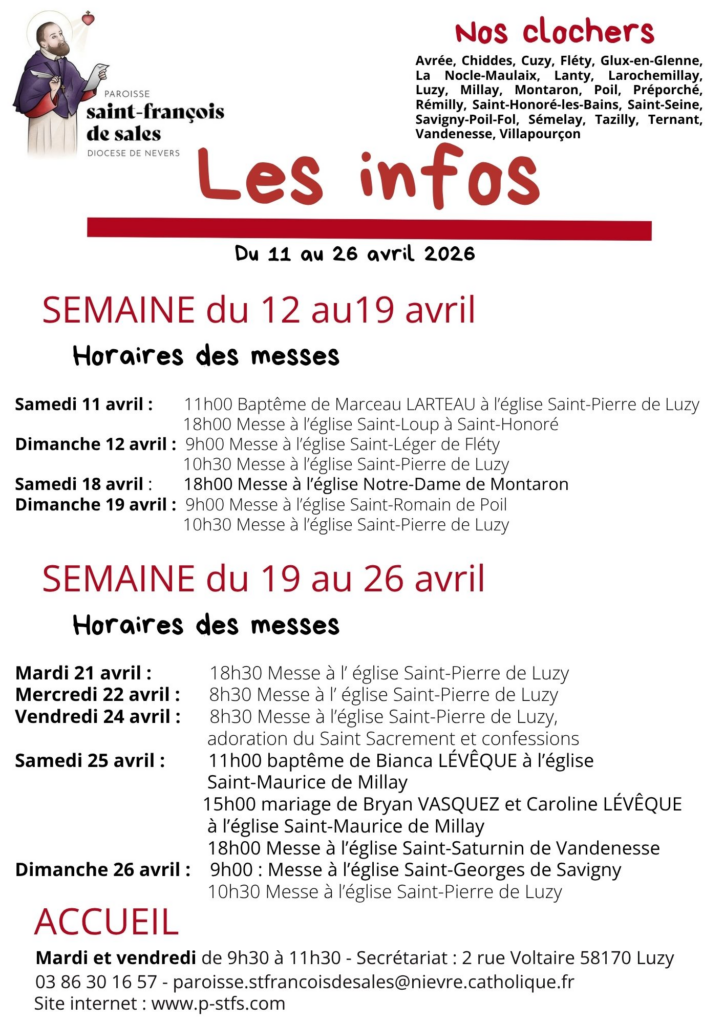 Les infos du 11 au 26 avril 2026